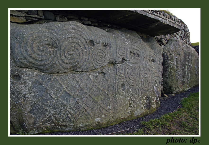 Newgrange, a megalitikus örökség A téli napforduló az év legrövidebb napja, a természeti újév kezdete, az alvó föld ébredése. A sír bejáratát díszítő kő mintázata háromszoros spirál. A belső spirál jelképezheti a lélek, halál utáni útját, a külső pedig az újjászületést. Ha ez a feltételezés helyes, akkor ez a kozmikus tojás a termékenység jelképe lehet, benne pedig az élet és halál örök körforgása. A prehisztorikus kor papjai a kamrák kőmedencéibe valószínűleg a legtiszteletreméltóbb ősök maradványait helyezték, így biztosították számukra a fénysugarak éltető ereje által családfájuk továbbélését…